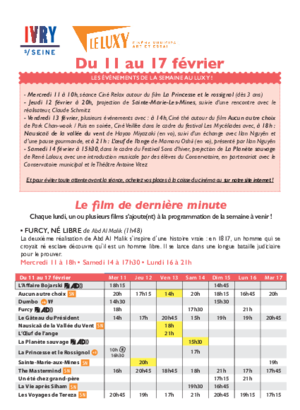 Le film de dernière minute !Semaine du 11 au 17 février FURCY, NÉ LIBRE De Abd Al Malik Avec Makita Samba, Romain Duris, Ana...