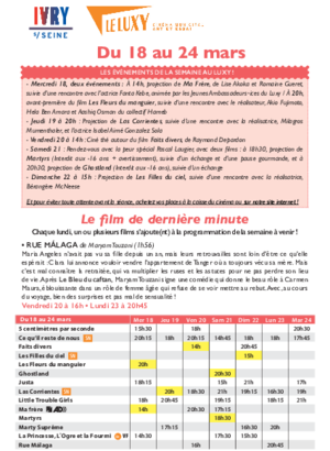 Le film de dernière minute !Semaine du 18 au 24 mars • RUE MÁLAGA de Maryam Touzani (1h56) Maria Angeles n’avait pas vu sa...