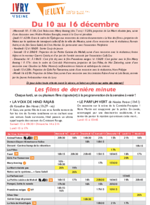 Les films de dernière minute !Semaine du 10 au 16 décembre • LA VOIX DE HIND RAJAB de Kaouther Ben Hania (1h29 - vo) À Gaza, une...