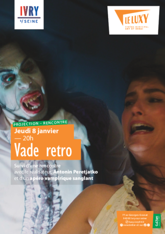Projection rencontreVade Retro : quand Antonin Peretjatko sort les crocs !Jeudi 8 janvier à 20hLa folie des vampires s'empare du Luxy !