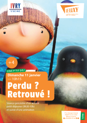 Ciné P’tit Déj’Perdu ? Retrouvé ! Un ciné p'tit déj à ne pas manquer !Dimanche 11 janvier à 10h15Un p'tit dej, un film et une animation, c'est ça le ciné p'tit dej' !