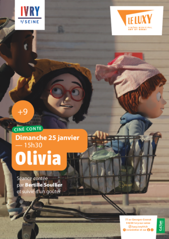 Ciné GoûterOlivia : un Ciné-conte de Bertille Soullier !Dimanche 25 janvier à 15h30Une fable sociale qui inspirera un conte à Bertille Soullier !