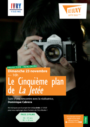 Projection rencontreLe Cinquième plan de La Jetée : plongée avec Dominique CabreraDimanche 23 novembre à 16h(Re)voyez aussi "La Jetée" de Chris Marker à 15h30, avant de plonger dans le film de Dominique Cabrera !
