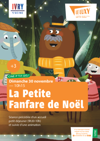 Ciné P’tit Déj’La petite Fanfare de Noël : un Ciné p'tit déj' au goût de fête !Dimanche 30 novembre à 10h15Un p'tit dej, un film et une animation, c'est ça le ciné p'tit dej' !