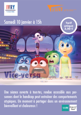 Ciné RelaxCiné relax : Vice-versaSamedi 10 janvier à 15hUn film pour parler des émotions dans un cadre bienveillant !